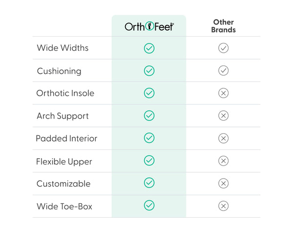 At Orthofeet, every detail is designed with your comfort in mind. From the first step, you’ll feel the difference: soft cushioning that eases pressure, built-in arch support that helps you move with confidence, and a roomy toe box that gives your feet space to relax and breathe.