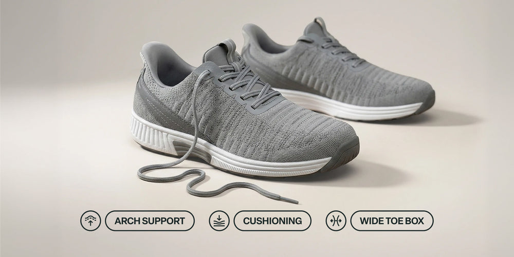 • Supportive Shoe Features: Look for strong arch support, stability, and motion control to maintain proper alignment.