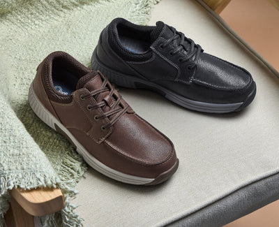 Don't let foot pain hold you back. Our men's orthopedic shoes combine support and durability to keep you moving comfortably all day. Whether you're dealing with plantar fasciitis, flat feet, or just need better support, we've engineered these shoes to help you stay active your way.