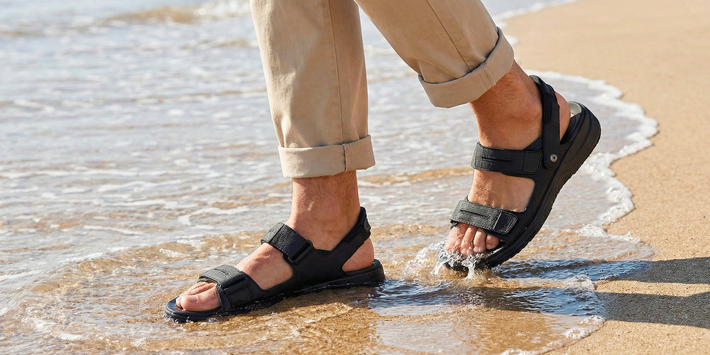 Orthofeet’s orthopedic sandals for men are designed to handle everything summer throws your way—from poolside lounging to weekend hikes. Each pair features built-in orthotic insoles, arch support, and cushioned soles to relieve pain from plantar fasciitis, flat feet, and other common foot issues. The open, breathable construction keeps your feet cool, while adjustable straps and slip-resistant outsoles offer all-day comfort and stability. Whether you’re walking on wet surfaces, tackling outdoor adventures, or simply staying active in the heat, these sandals are the perfect blend of rugged function and comfort-first design—a tailored style fit for men on the move.