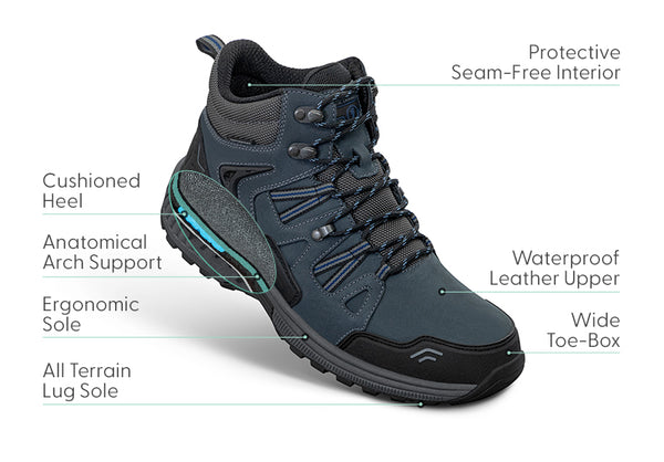 Orthofeet’s signature pain relief technology brings innovative functional features to help you navigate through rough terrain.