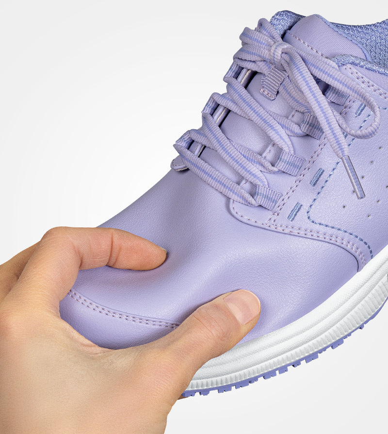 The slip-resistant outsole provides confident traction on wet surfaces, while our soft, protective interior and wide toe box accommodate swollen feet after long hours of standing.