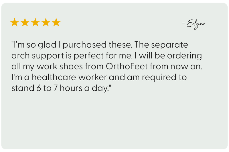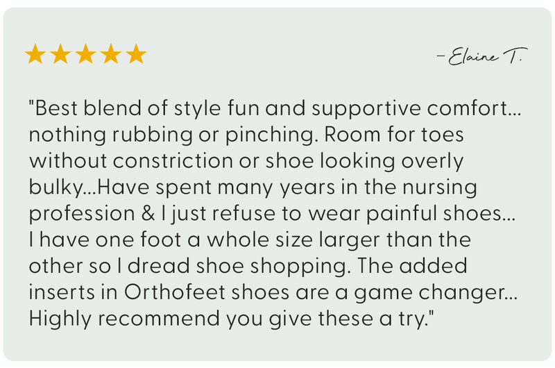 Orthofeet comfort shoes are designed with a removable orthotic insole that supports the arch, aligns the feet and body and controls overpronation for optimal health and mobility.