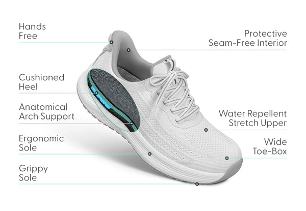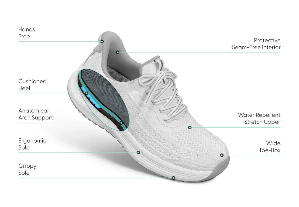 - Generously wide shoe silhouette to accommodate significant foot swelling as well as misshapen toes.