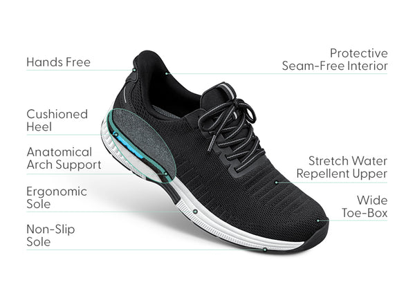 Lightweight cushioning soles alleviate shock forces on the heel bone, helping reduce foot pain and plantar fasciitis symptoms.