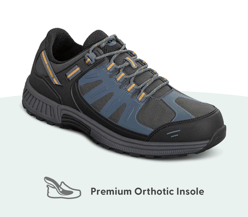 This high-performance waterproof shoe is always ready for the elements, and never falters to keep feet pain-free and protected. A stable lugged outsole, customizable Ortho-Cushion™ System support, and advanced ergonomic engineering reduce walking fatigue and the impact of every step on your day's trail. Free your mobility with a roomy padded interior and wide toe box.