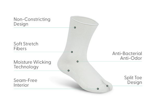 Every sock is designed with purposeful & unique features to ensure a comfortable, non-restrictive fit, enhancing everyday wellness and fostering a healthy environment, even for the most sensitive feet.