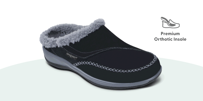 The adjustable side strap on this suede slip-on slipper opens wide to welcome feet into faux fur-lined luxury, with a heel lip that helps keep them on. Under the cozy warmth is full-foot cushioning and pain-relieving support of the Ortho-Cushion™ System. Charlotte's roomy toe box keeps the pressure off sensitive conditions and allows feet to move freely, all around the house.