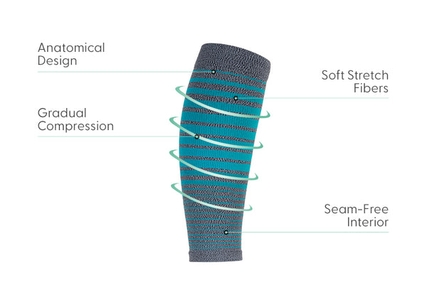 • Compression Calf Sleeves Standard 15-20 mmHg - Gray/Teal Stripe