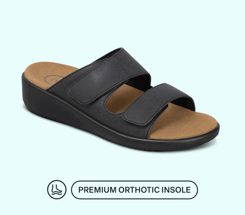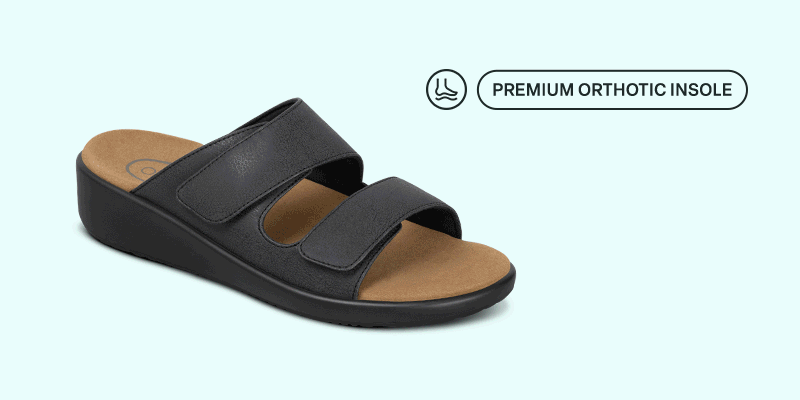 Beautiful wedge slides engineered for healthy comfort without compromising style.