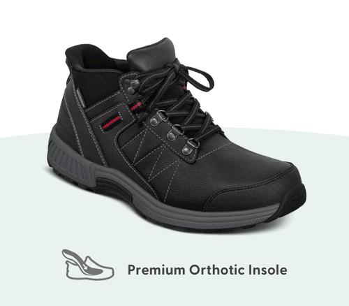 Step into lightweight, hiking-ready therapeutic performance without even bending to tie laces! Our patented hands-free technology makes getting outdoors easy, while the orthotic support reduces every impact and improves alignment for more miles without pain. The durable leather upper is padded inside, with healthy room to prevent irritations and pressure.