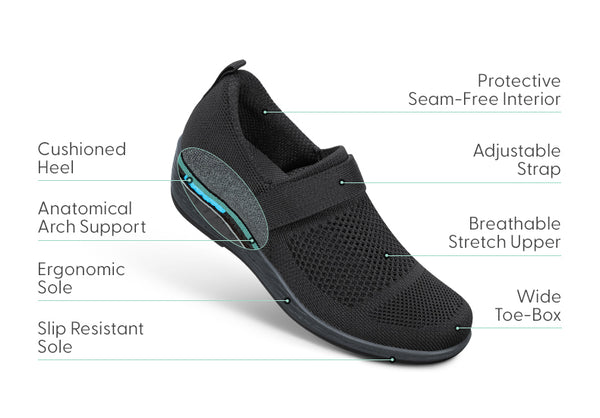 Step into comfort that lets you enjoy life without limits. Our shoes are thoughtfully designed to ease foot pain and keep you moving comfortably throughout your day.