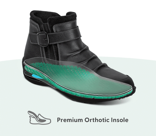 While an ultra-soft, "ruched" leather upper charms with its versatile style, innovative Orthofeet features make Heidi a go-to bootie for getting more out of your day. Use the zipper on the inner side for remarkably easy on & off. The adjustable buckle, over stretch gore on the outer side, adds comfort that moves with you. Step out confidently with the Ortho-Cushion™ System.