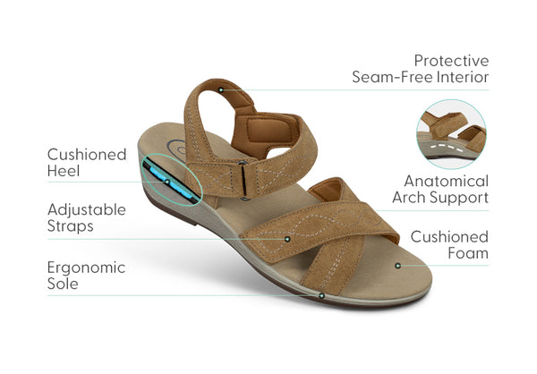 Holly is your go-to sandal for summer gatherings, brunches, and days when you want style that feels as good as it looks. The adjustable straps and gentle fit keep sensitive feet comfortable, making it easy to stay on your feet and enjoy every occasion without pain.