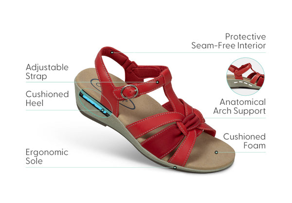 Dreaming of a healthy wedge sandal? Now there's Hope, offering the all-day comfort and heel-to-toe support of the Ortho-Cushion™ System. Gladiator-style straps keep your foot secure without pressure, starting with an adjustable inset strap that pulls opens fully, plus elastic in the padded heel strap. Elevate your warm weather looks and leave walking foot pain far behind.