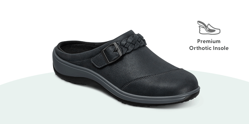This classic clog delivers slide-in pain relief with an adjustable leather upper and arch support for better alignment.