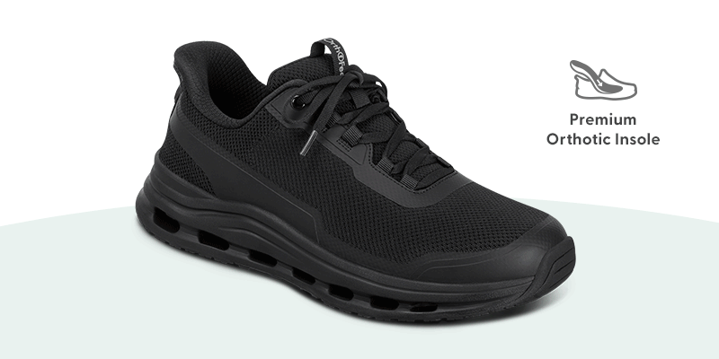 Step up your active life and protect your mobility with Journey, featuring our OFX Hands Free tech, so you can slip them on without bending down. A breathable stretch upper contours to your foot in motion, for minimal pressure. Put your comfort ahead of the curve with the heel-to-toe pain relief of the Ortho-Cushion™ System, including an ergonomic max cushion sole.