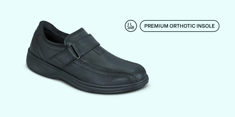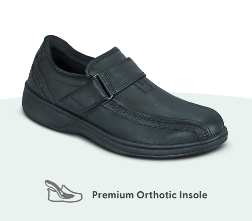 This classic leather pull-strap oxford is ready for every occasion and puts your healthy comfort front-and-center. Enjoy pain-free time on your feet with the adjustable, anatomical support of the Ortho-Cushion™ System. A single strap closure makes these easy to get on and off, while a roomy, adjustable fit, and a smooth, padded interior protect and enhance your mobility.
