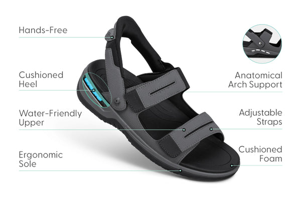 Rule land and sea in healthy comfort and water-ready performance. With our remarkable hands-free design there’s no need to bend down, just slip in and get going. Two padded straps adjust your individual fit and can open completely, for enhanced accessibility. Equip your mighty stride with Ortho-Cushion™ System support and walking ease, for more pain-free hours.