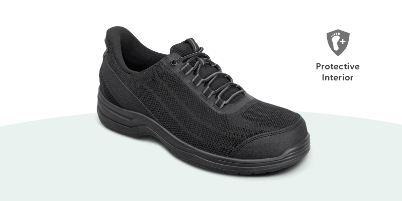 - Don't let pain leave any job undone. In these safety-rated work shoes, featuring the Ortho-Cushion™ System, your comfort and mobility is protected inside and out. The seam-free interior offers extra depth and roomy toe box, to prevent irritation and pressure. Jobsite-readiness includes a crush-resistant upper, composite toe guard and slip-resistant tread.