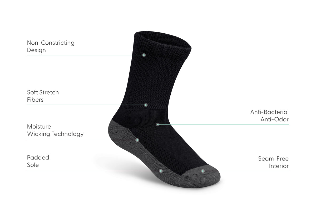Padded Sole Diabetic Socks - Black