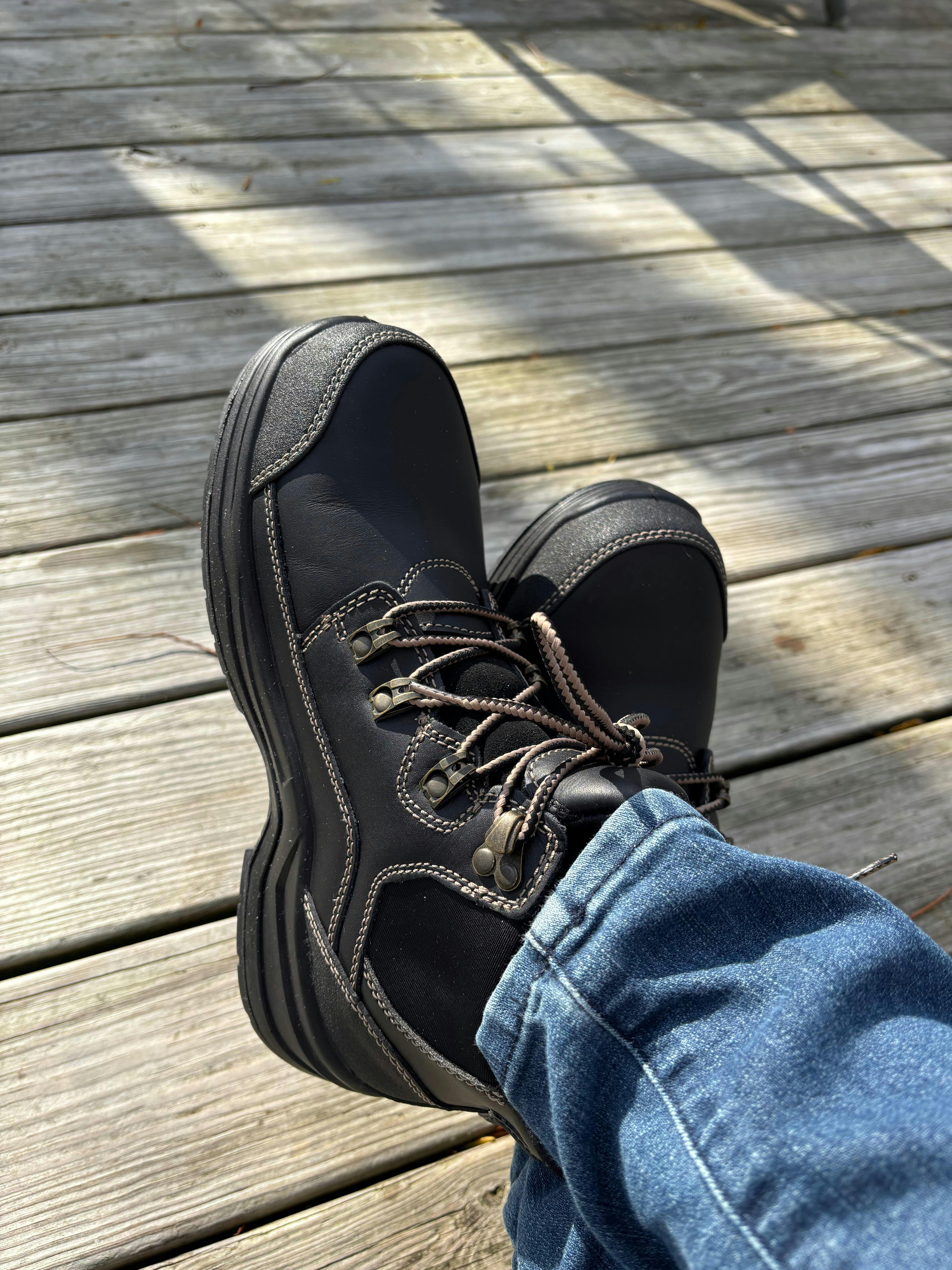 Waterproof work boots featuring crushproof toe and advanced ergonomic support.