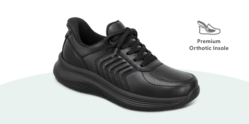 Your go-to classic sneaker just got a major upgrade in all-day comfort. Don’t bother with the laces, just slip on our OFX hands-free design and get moving. A heel-to-toe max cushion sole, Ortho-Cushion™ System support, and a slip-resistant tread ease every step. Roam’s soft, durable leather upper and padded interior alleviate pressure for more hours and less pain.