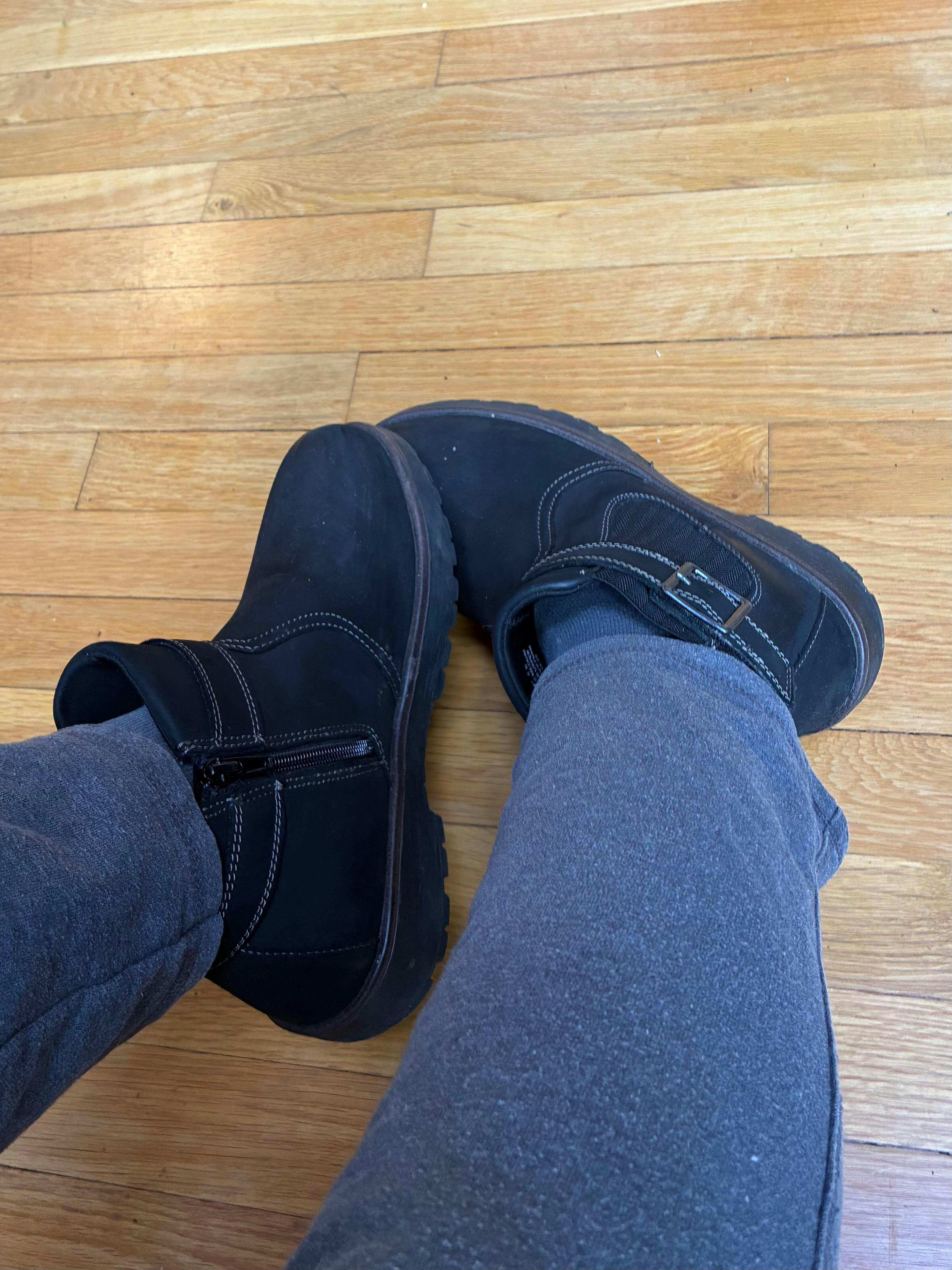 Step out in style in this block heel boot and take your day farther without pain, even in the rain. A side zipper closure makes for effortless on & off and the adjustable side strap sets a perfect fit. Scarlett’s soft, water-repellant suede and a stretch gore panel move with you. Treat your feet to a protective interior and the podiatrist-recommended, Ortho-Cushion™ System.