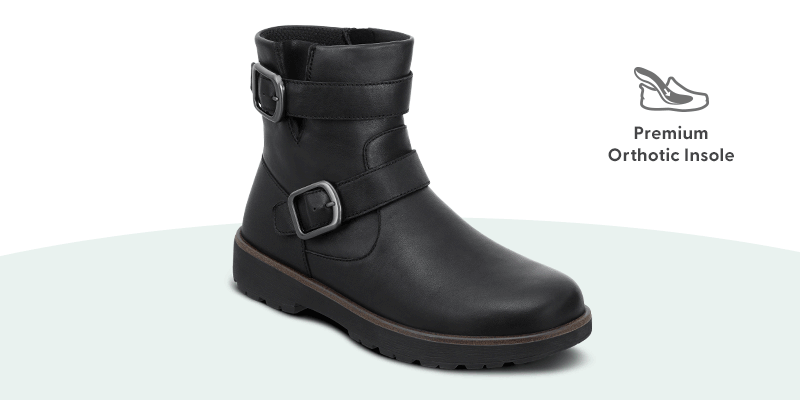 Shania brings classic style to your everyday adventures with its chic leather design and thoughtful comfort features. The sleek inside zipper lets you slip in with ease, while decorative buckles with hidden hook-and-loop adjustability create the perfect fit around your calves. This versatile mid-rise boot transitions beautifully from coffee dates to weekend strolls, wrapping your feet in soft, protective comfort. With Shania, you'll feel confident and supported wherever the day takes you – because looking great should always feel this good.