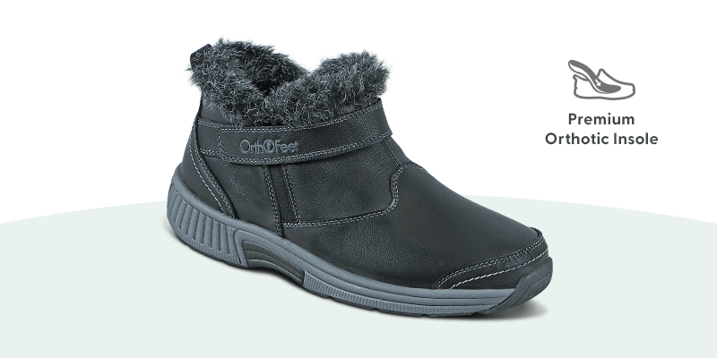 This cute leather bootie keeps busy days pain-free, with adjustable Ortho-Cushion™ System support to enhance your mobility. The zipper on the inner side of the boot makes them easy to get on, while the strap and stretch gore on the outer side adjust a perfect fit that flexes with you. Siena protects feet in a healthy space, with padded interior, extra depth and a roomy toe box.
